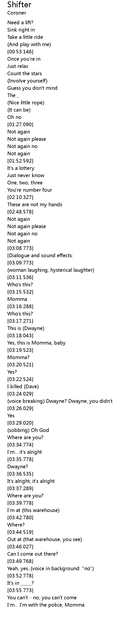 | [03:58.737] | I'm... I'm with the police, Momma |