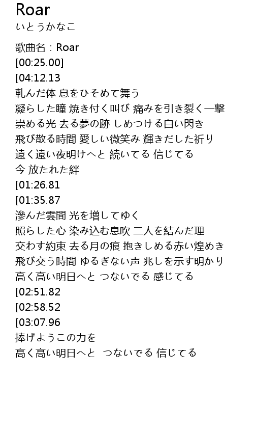 | [00:00.00] | 歌曲名:Roar |