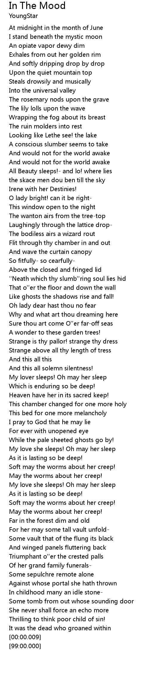 | [09:45.70] | My love she sleeps! Oh may her sleep |
