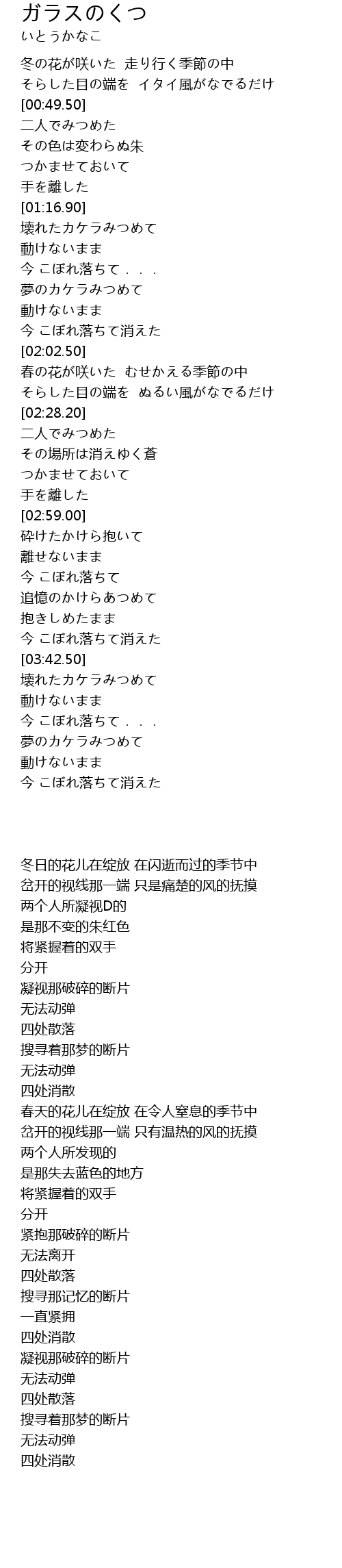 | [00:38.30] | そらした目の端を イタイ風がなでるだけ |