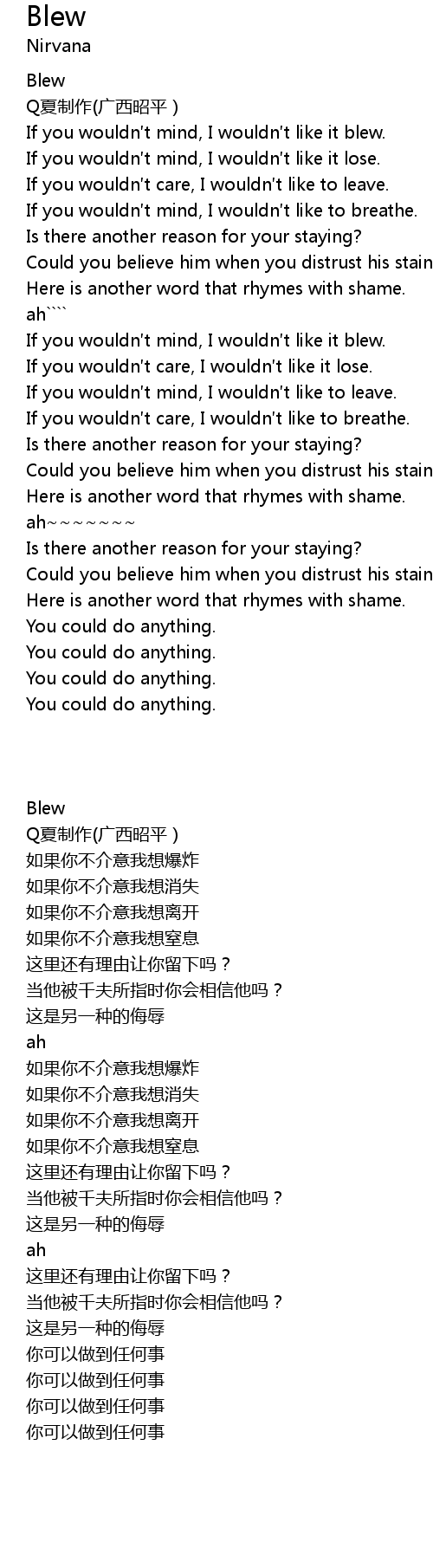 | [00:15.81] | If you wouldn t mind, I wouldn t like it blew. |