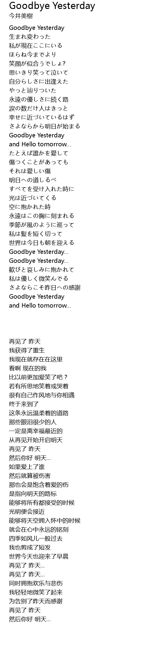 - Goodbye Yesterday