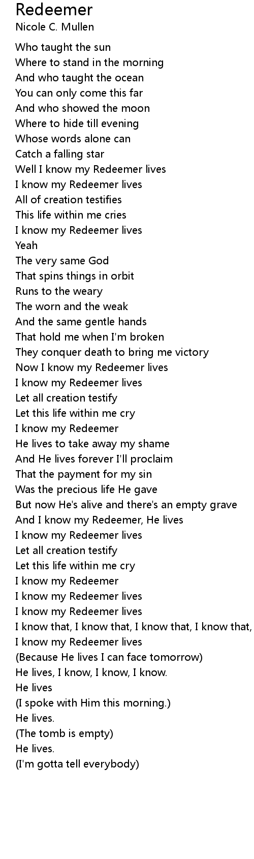 I know my Redeemer lives |