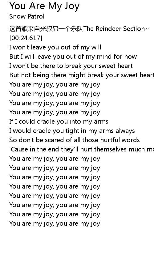 | [01:34.943] | You are my joy, you are my joy |