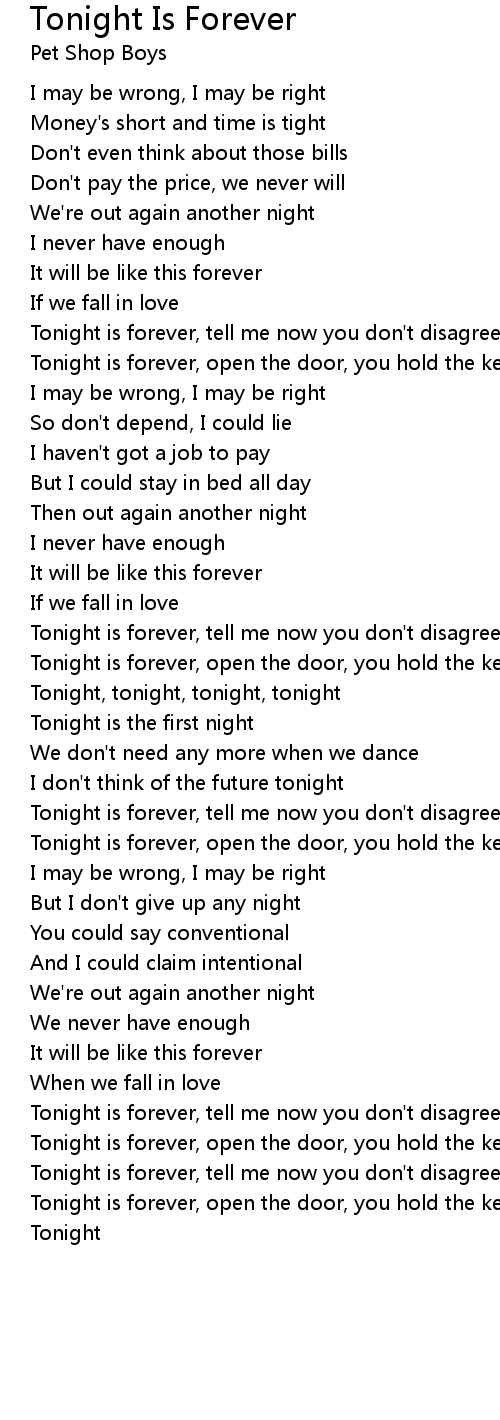 Tonight is forever, tell me now you don't disagree |