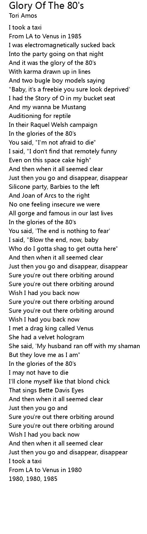 Glory Of The 80's Lyrics