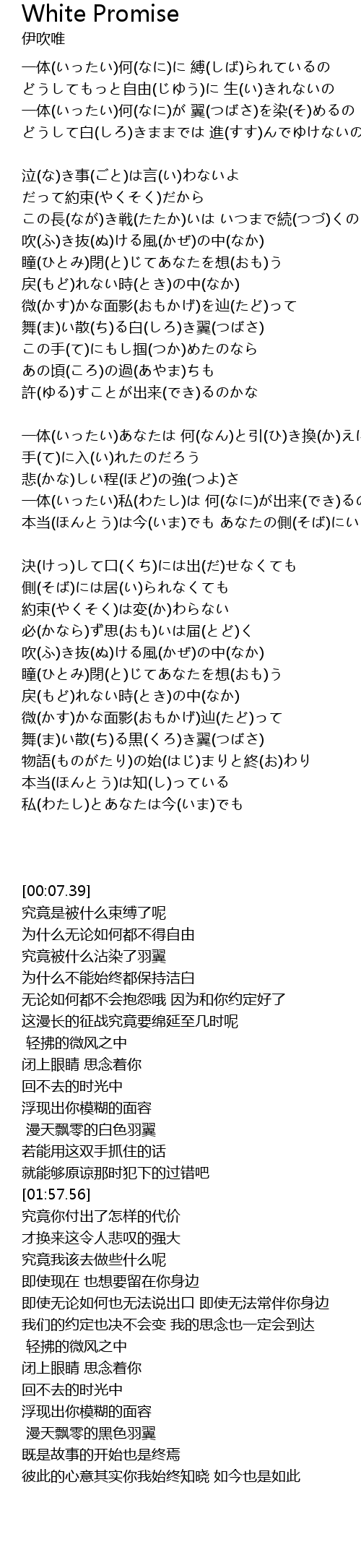 | 約束(やくそく)は変(か)わらない 必(かなら)ず思(おも)いは届(とど)く | |