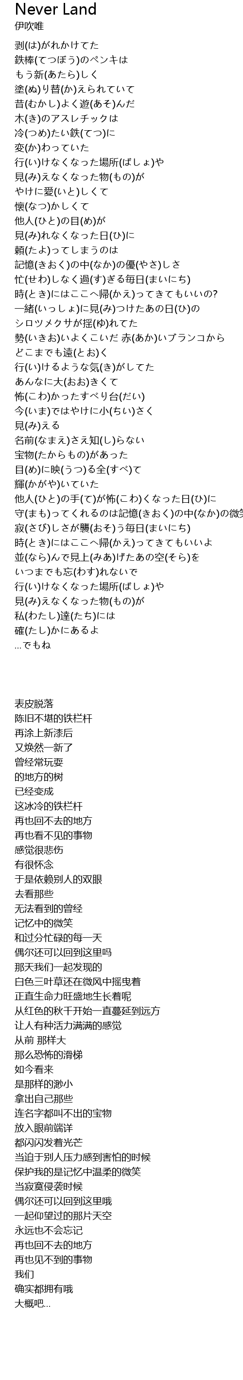 | [02:41.03] | 時(とき)にはここへ帰(かえ)ってきてもいいよ |