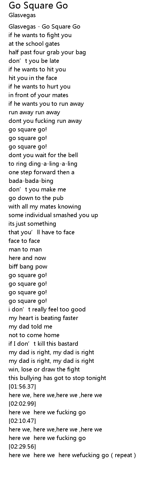 | [00:47.89] | go square go! |