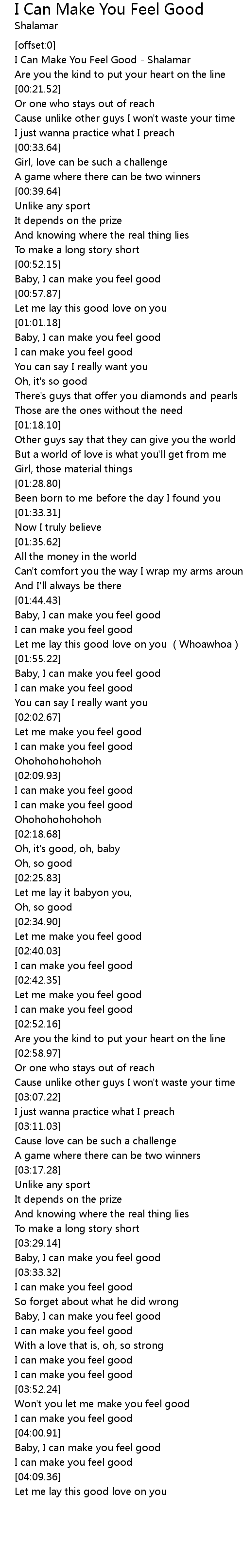| [00:00.22] | I Can Make You Feel Good - Shalamar |