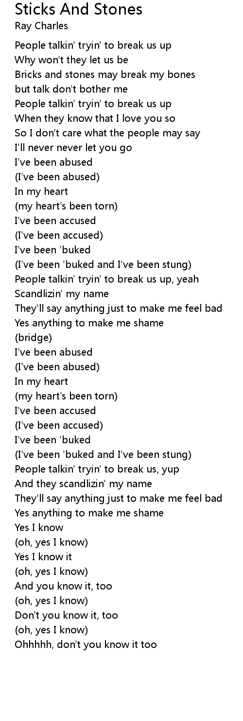 Bricks and stones may break my bones |