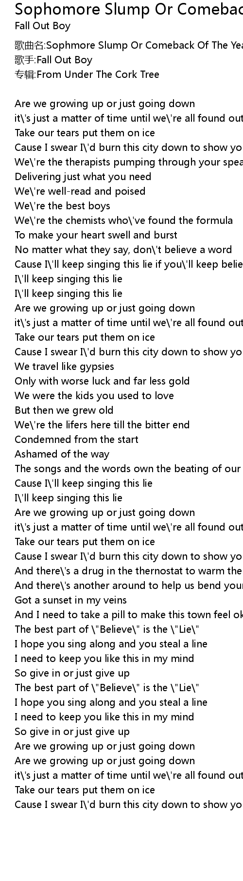 | 歌曲名:Sophmore Slump Or Comeback Of The Year | |
