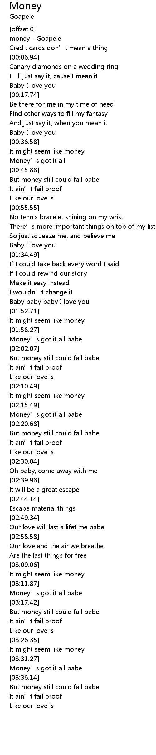 | [00:00.77] | money Goapele |