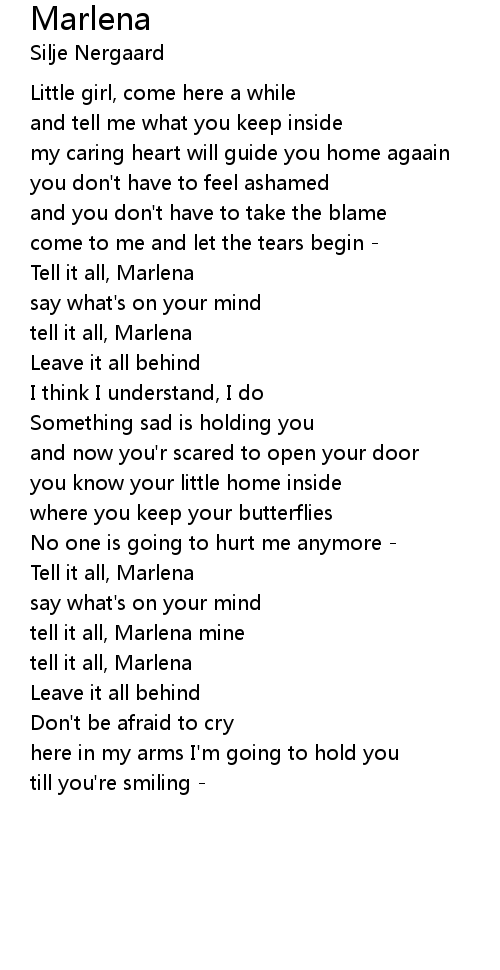 tell it all, Marlena |