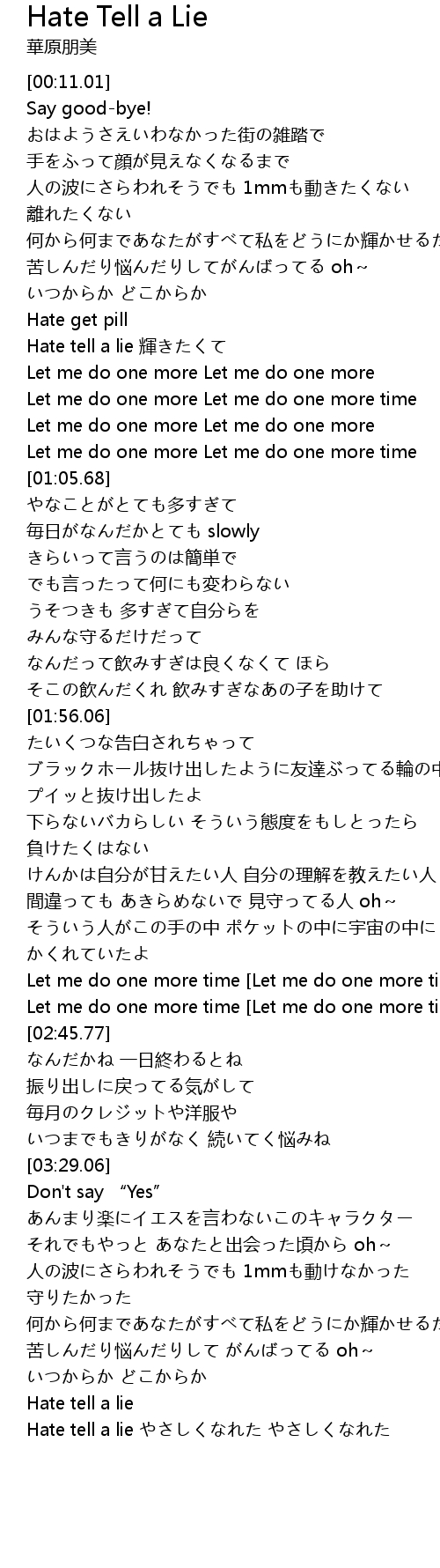 | [04:04.52] | Hate tell a lie やさしくなれた やさしくなれた |