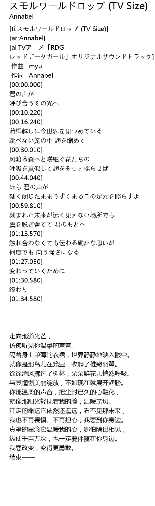 | [00:37.990] | 呼吸を真似して翅をそっと揺らせば |
