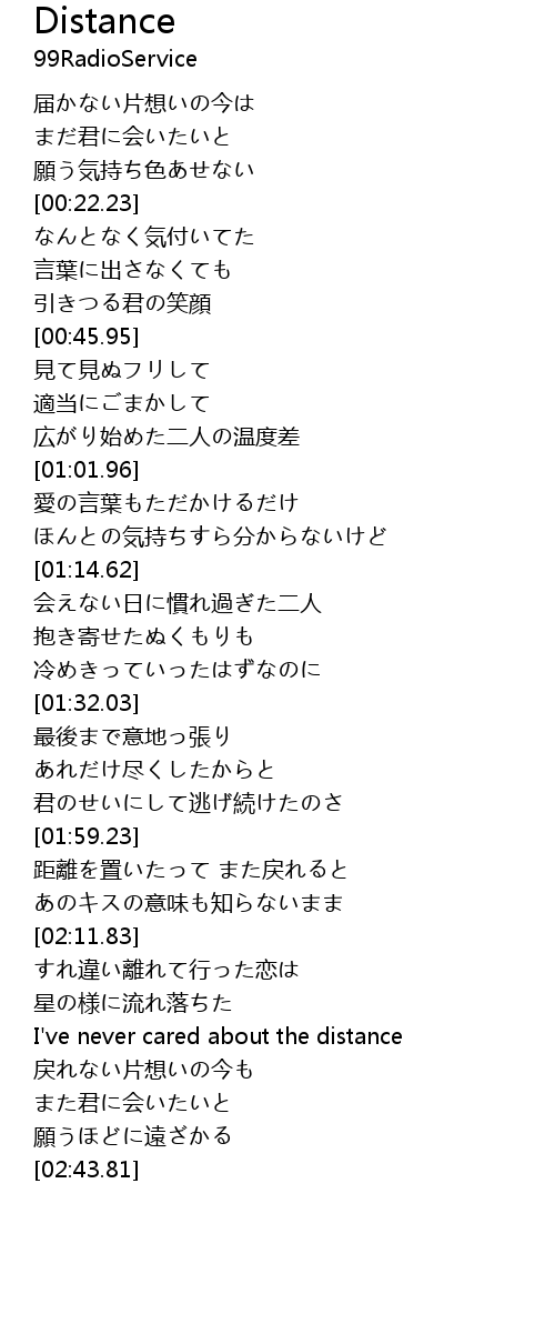 | [02:23.34] | I've never cared about the distance |