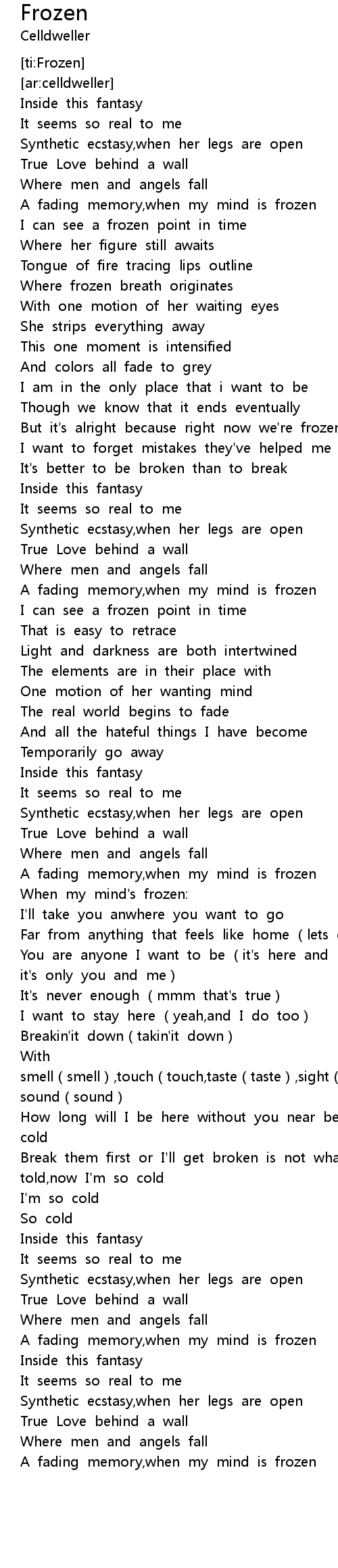 | [02:05.741] | But it' s alright because right now we' re frozen |
