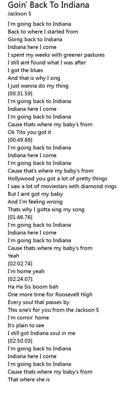 I'm going back to Indiana |