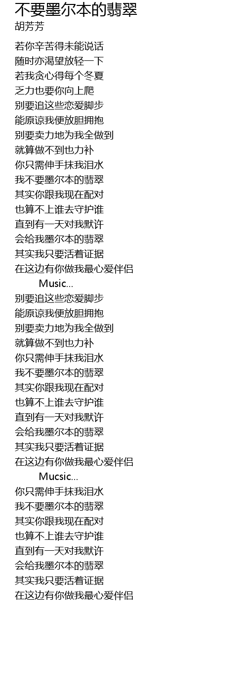 | [03:24.430] | 我不要墨尔本的翡翠 |