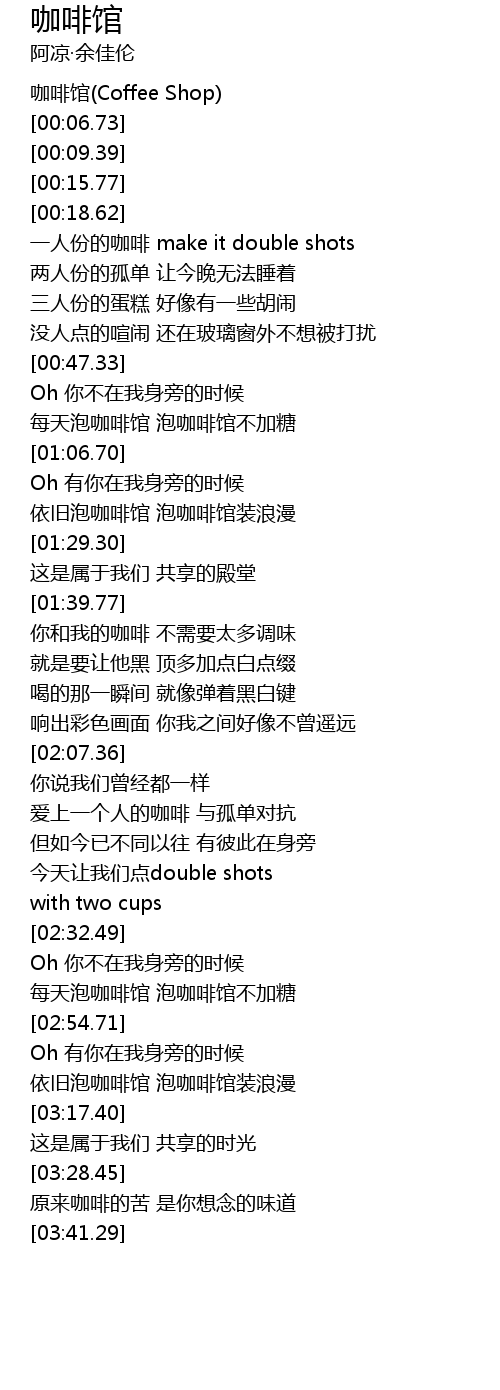| [00:00.67] | ka fei guan Coffee Shop |
