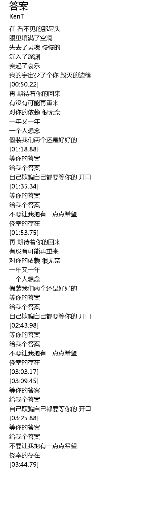 | [02:44.65] | 等你的答案 |