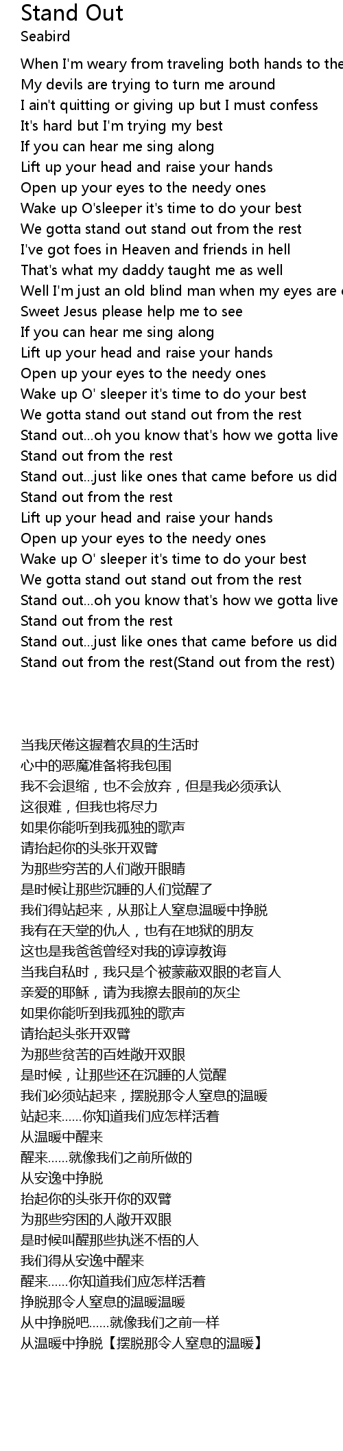 Stand out...oh you know that's how we gotta live |
