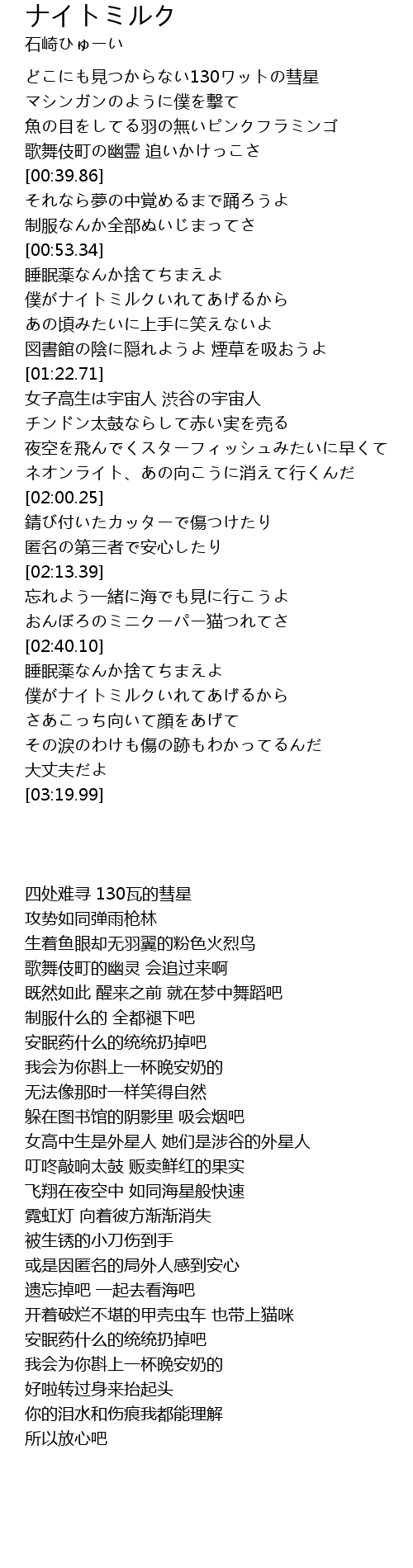 | [02:50.42] | 僕がナイトミルクいれてあげるから |