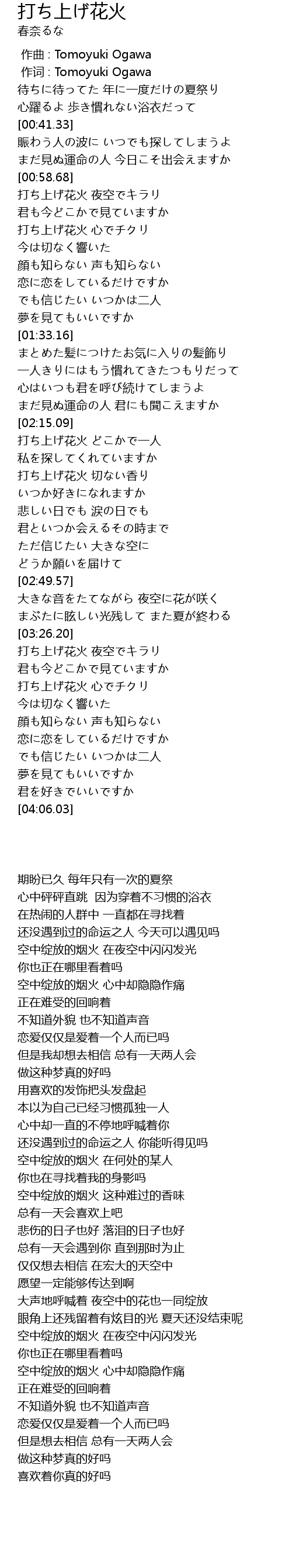 | [03:36.14] | 打ち上げ花火 心でチクリ |