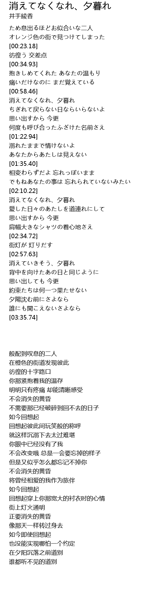 | [00:59.47] | 消えてなくなれ、夕暮れ |