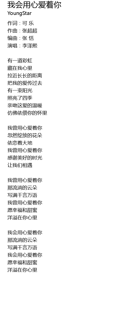 | wǒ huì yòng xīn ài zhe nǐ | |
