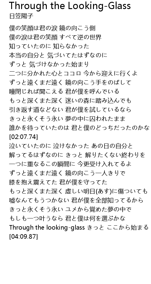 | [03:56.72] | Through the looking-glass きっと ここから始まる |