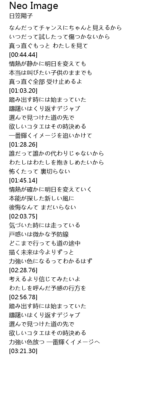 | [03:14.60] | 力強い色放つ 一番輝くイメージへ |