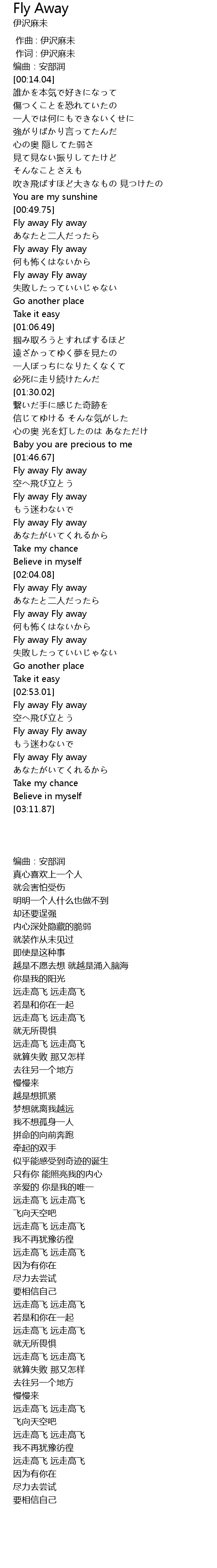 | [00:01.00] | 作词 : 伊沢麻未 |