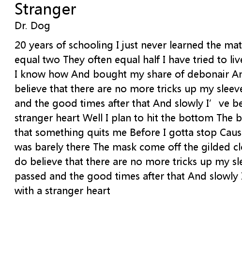 | 20 years of schooling I just never learned the math That one and one don’t equal two They often equal half I have tried to live the high life The best that I know how And bought my share of debonair And parlayed it on the crowd I do believe that there are no more tricks up my sleeve The good old days have passed and the good times after that And slowly I’ve become undone A stranger with a stranger heart Well I plan to hit the bottom The bottle then the top And I pray that something quits me Before I gotta stop Cause the masquerade is over But I was barely there The mask come off the gilded cloth Yet I’m just barely here I do believe that there are no more tricks up my sleeve The good old days have passed and the good times after that And slowly I’ve become undone A stranger with a stranger heart |