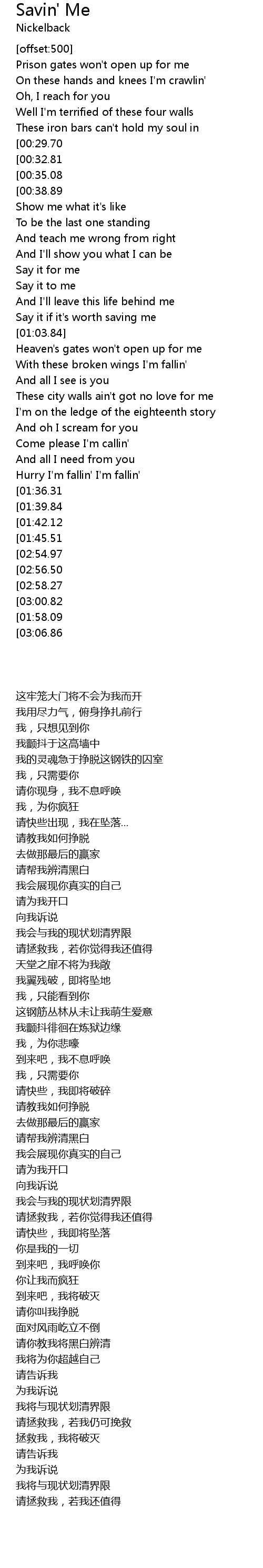 | [00:15.11] | On these hands and knees I' m crawlin' |