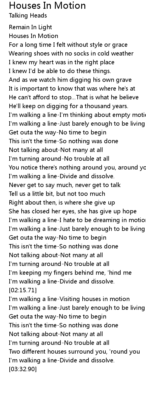 [02:52.30] I'm walking a line-Visiting houses in motion
