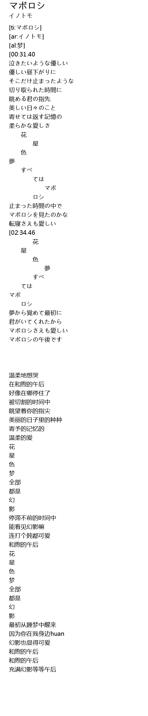 | [01:30.63][02:34.46][02:39.71] | róu wǔ hòu |