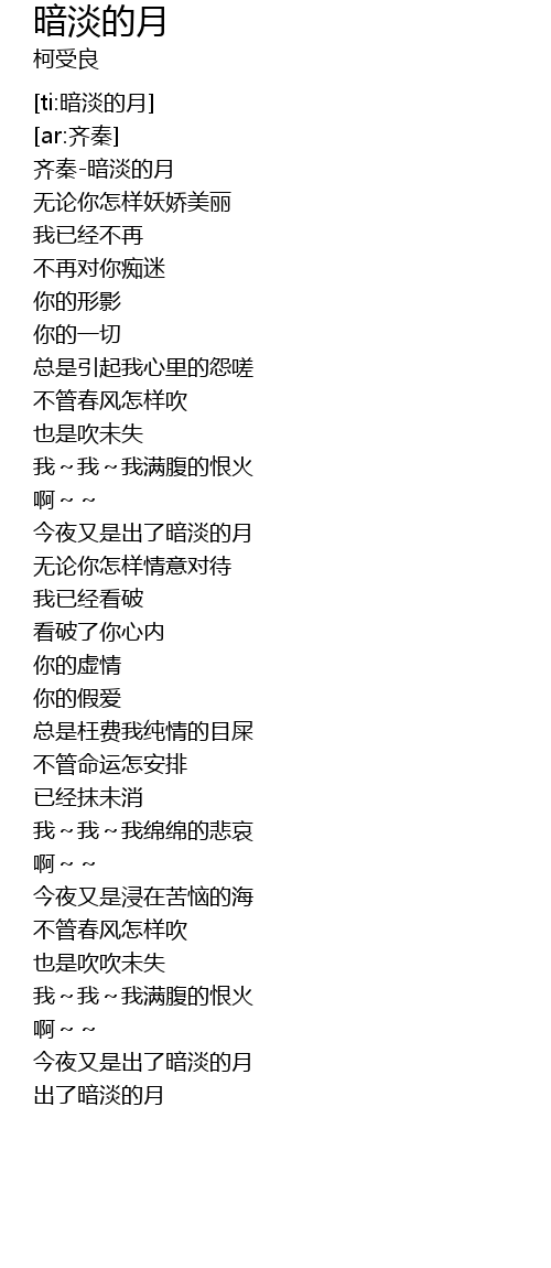 | [00:02.278] | 齐秦-暗淡的月 |