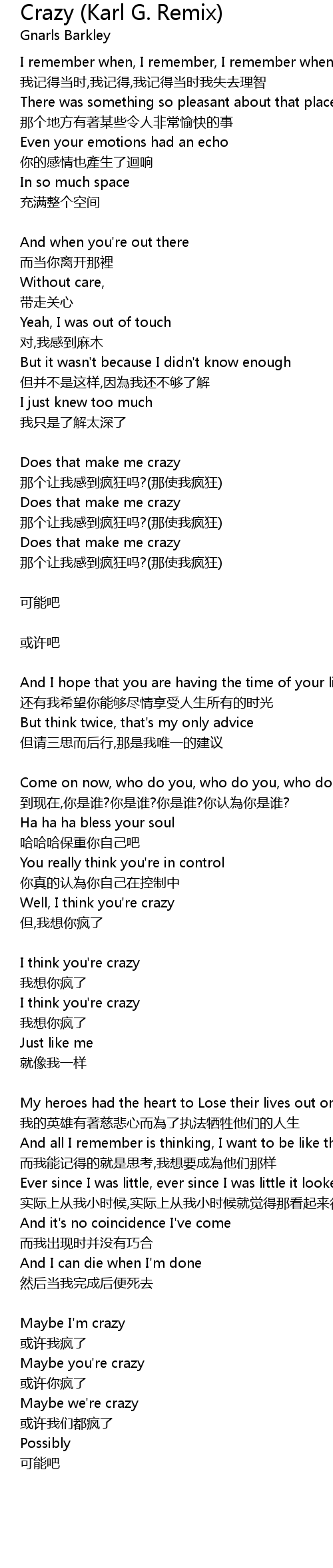 | Song | Crazy (Karl G. Remix) |