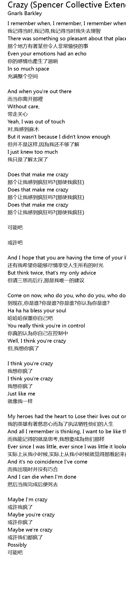 | Song | Crazy (Spencer Collective Extended Mix) |