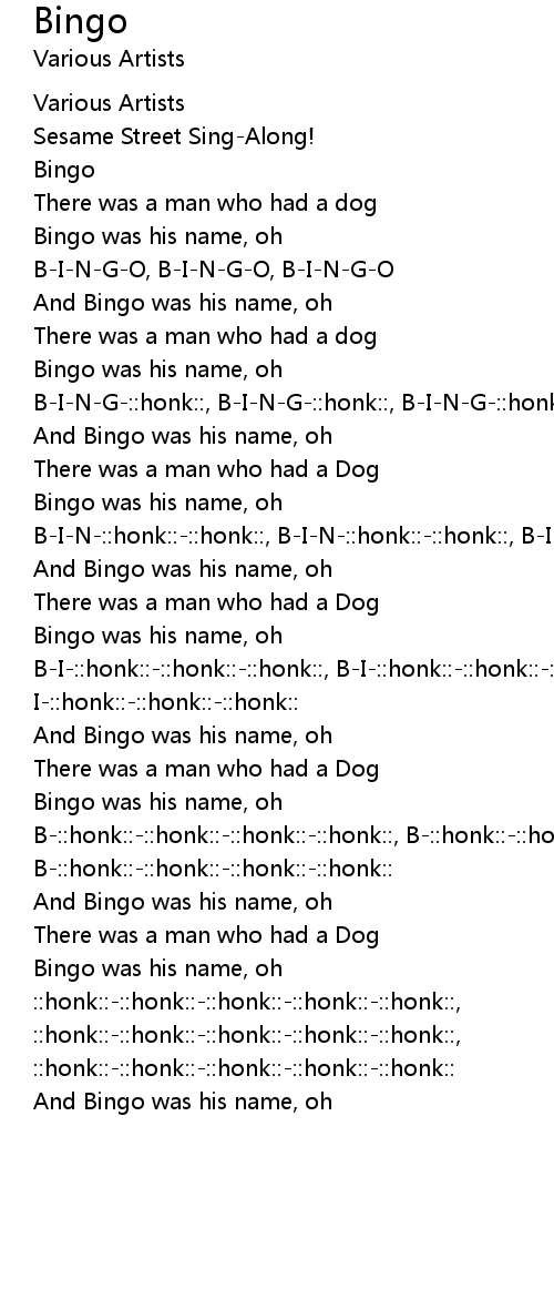 B-I-N-G-O, B-I-N-G-O, B-I-N-G-O |