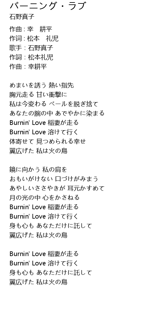 | [00:58.61] | Burnin' Love 溶けて行く |