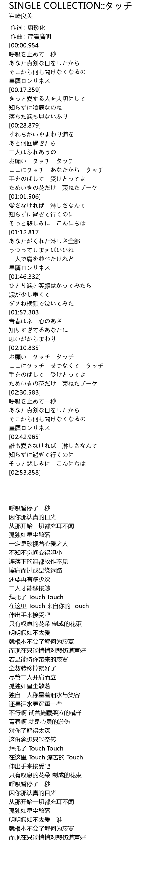 | [02:14.074] | ここにタッチ せつなくて タッチ |