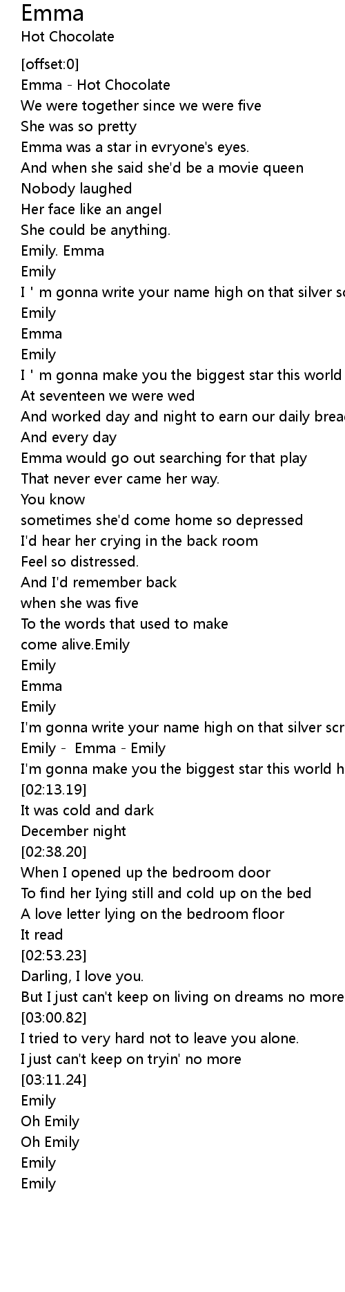 | [00:00.50] | Emma - Hot Chocolate |