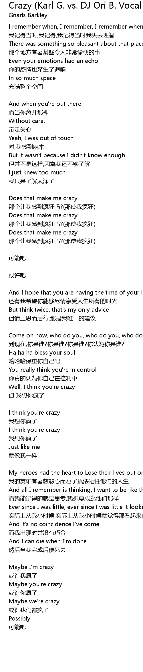 | Song | Crazy (Karl G. vs. DJ Ori B. Vocal Mix) |