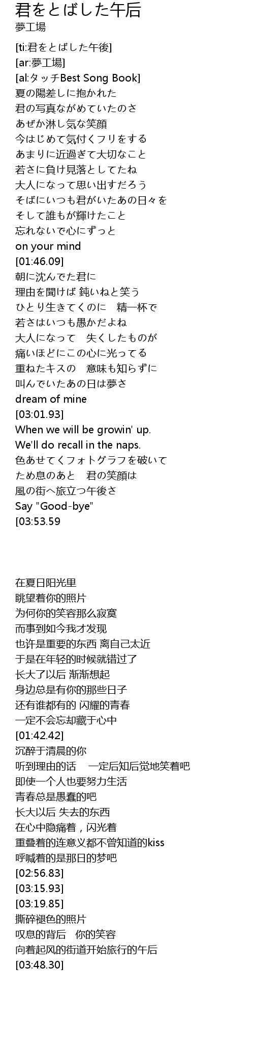 | [ti:君をとばした午後] | |