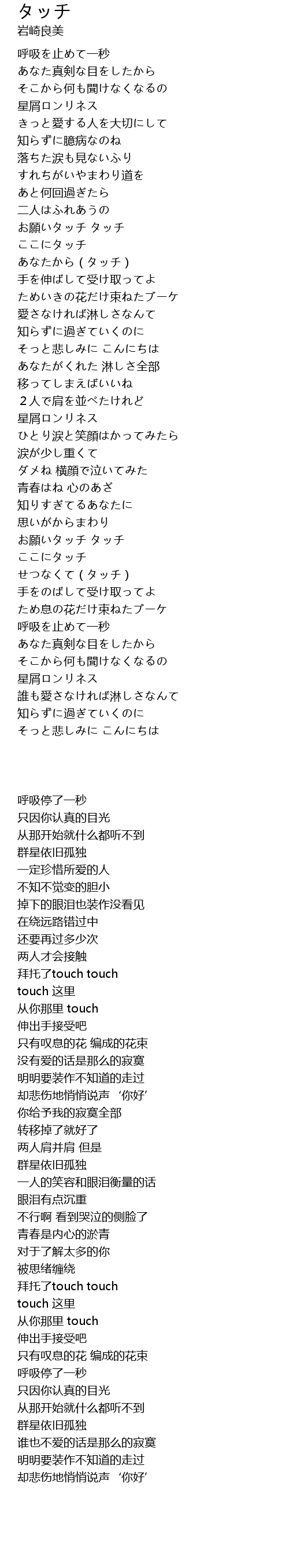 せつなくて(タッチ) |