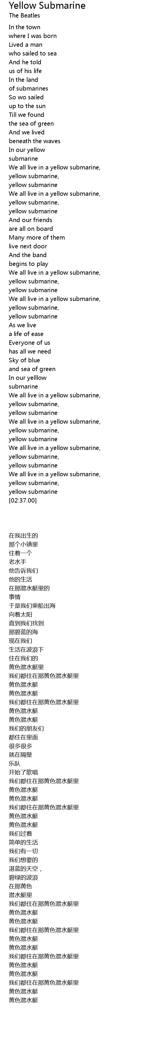 We all live in a yellow submarine, |