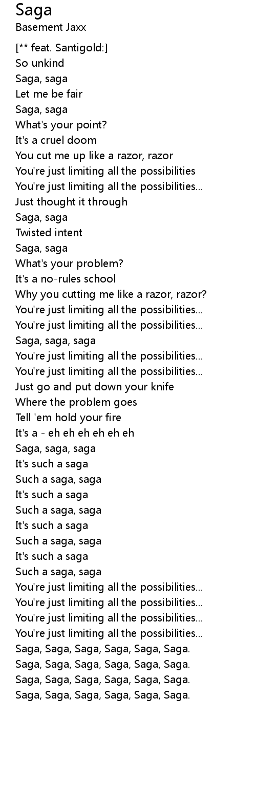 Saga, Saga, Saga, Saga, Saga, Saga. |